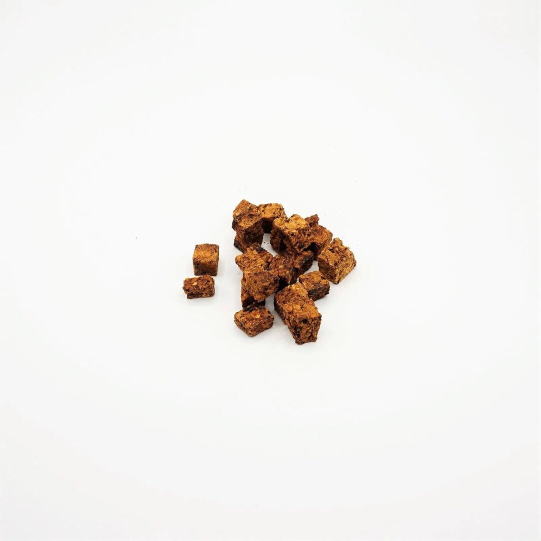Deze kleine blokjes van 100% gedroogde kip zijn dé ultieme beloning voor jouw hond. Vol smaak, geur en voedingsstoffen, en volledig natuurlijk zonder granen, toevoegingen of conserveermiddelen. Perfect als trainingssnack, maar ook ideaal als lekker én verantwoord tussendoortje.